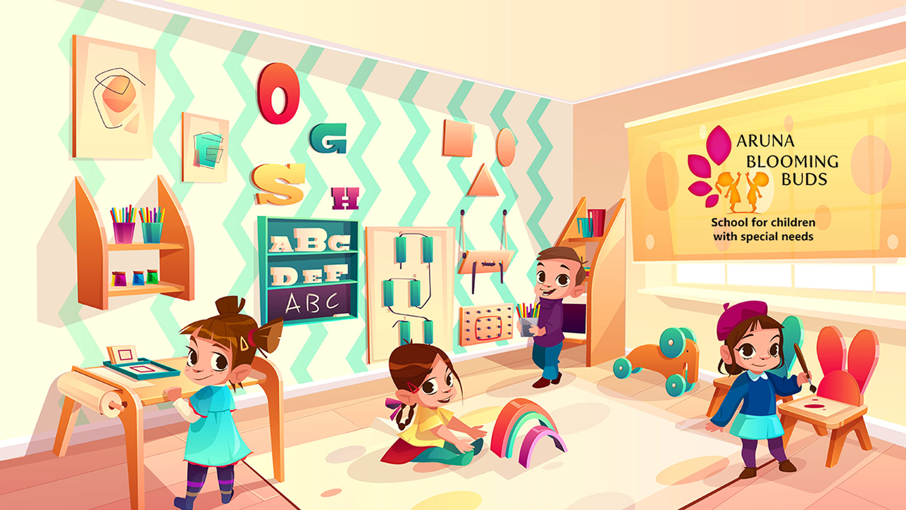 ARUNA BLOOMING BUDS (School for children with special needs) has been established by Dr.A.Ramanathan.,MBBS.,DCH., on October 8th 2014 to educate children with all kind of developmental disabilities. Our school is housed in reinforced concrete building at our hospital premises with good ventilation and lighting. We offer Multi-disciplinary therapy services such as physiotherapy, speech therapy, Occupational therapy, special education, yoga, computer, art and aerobics. Children with neurological disorder, behavioral disorder, physical disorders, and learning disability, ADHD and communication disorders are benefited. Our school has 29 children. The teaching and training faculty includes 10 teachers of which 4 are special educators. Our children have physiotherapy, speech therapy and Massage therapy from qualified personals daily.